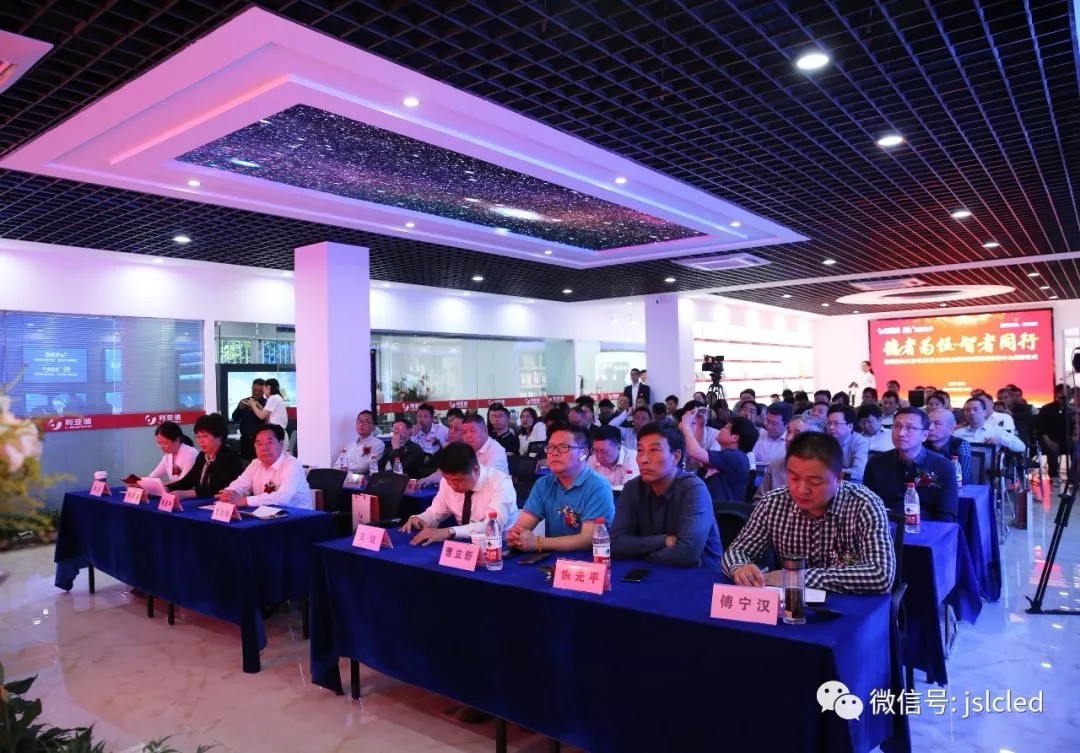 江蘇亮彩電子有限公司總經理章九余先生、利亞德渠道中心副總經理吳斌先生、今創集團(股票代碼603680)董事局主席俞金坤和常州市工商聯副主席韓紅衛女士共同上臺進行揭牌和授牌儀式。
