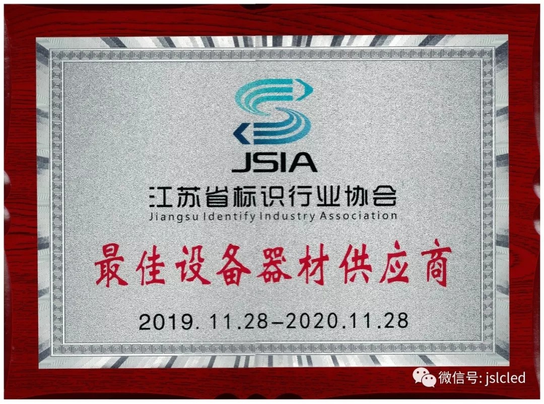 在這次盛會上,榮獲"2019年度江蘇省標識行業最佳設備供應商"。這是江蘇亮彩公司的光榮,感謝協會對我司的認可,以此為今后工作更大的動力,更好地為協會和廣大客戶服務!