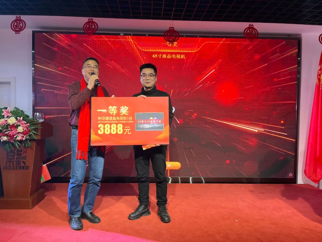 ▲曹立新先生 中國LED工程商聯(lián)盟秘書長(高級工程師) 曹秘書長雖未親臨年會現(xiàn)場,他給我們帶來了新年賀詞: 展望未來,我們滿懷期待!值此辭舊迎新之際,我謹(jǐn)代表中國LED工程商聯(lián)盟和全國精品巡展組委會向大家致以最誠摯的祝福! 在新的一年里,希望江蘇亮彩致力于為客戶提供更好的產(chǎn)品和服務(wù),不斷提升自身的綜合實力,把更多的創(chuàng)新產(chǎn)品推向市場,為更多的客戶提供更優(yōu)質(zhì)的服務(wù),為合作伙伴提供更完善的支持,讓我們一起攜手共進(jìn),共創(chuàng)輝煌! 酒興高至,此時情意正濃,讓我們在這載歌載笑的氛圍中,正式拉開今日宴會的序幕。 一等獎得主 年會怎么能少了大家最最最期待的抽獎環(huán)節(jié)呢? 我們的獎項設(shè)置如下: 新年好運來,把好運延續(xù),希望2023年大家都能“兔”來運轉(zhuǎn),鴻運當(dāng)頭。 相聚的時光雖然短暫,但這份感動和美好,卻將永遠(yuǎn)留存在我們心中。就讓我們相約在未來的前行路上,一路攀高,彼此照耀。也讓我們相約明年再會。 不負(fù)過去,不懼未來。 以奮斗之心,迎接2023!