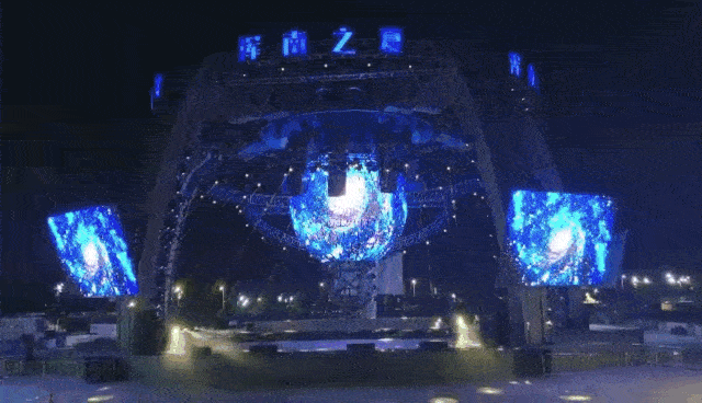中央懸掛的高清多維球形屏幕,由512塊單體屏幕包裹而成,采用的是金立翔戶(hù)外P5間距LED屏,配合頂部的機(jī)械手裝置造型,為演出呈現(xiàn)精彩絕倫的立體特效,帶領(lǐng)觀眾穿梭時(shí)空,打造出既熱烈又炫酷的現(xiàn)場(chǎng)氛圍。