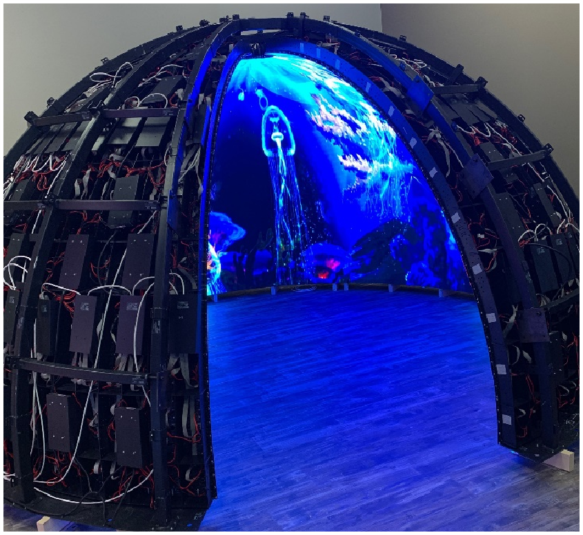 再結合模組磁柱+鋼結構的高效率安裝方式。通過豐富多樣的鋼結構設計,可將SV(soft)柔性模組根據需要拼接弧形屏,圓柱,曲面等等創意顯示屏,打造顯示多元化。